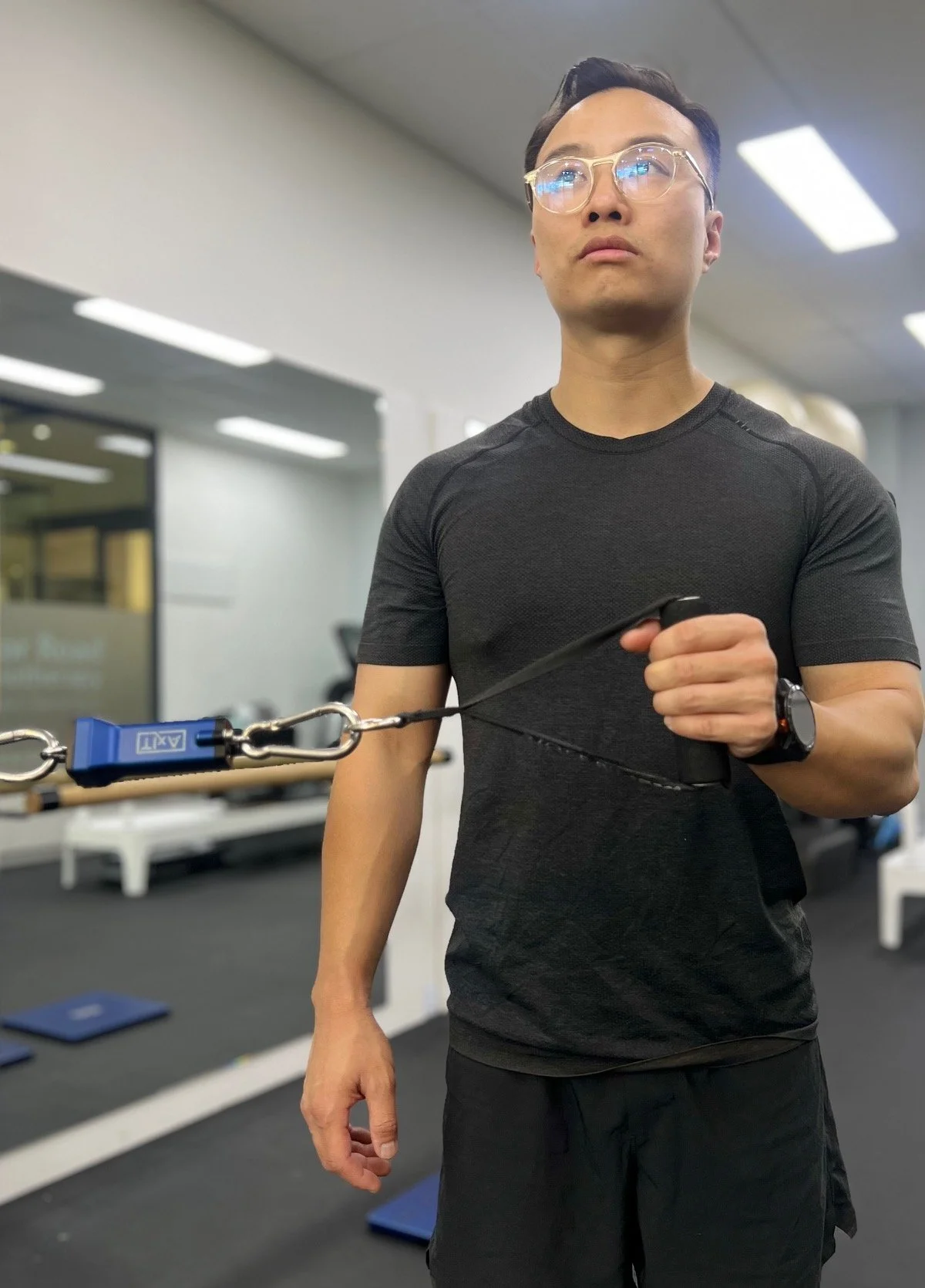 State-of-the-art onsite exercise studio with specialised equipment for progressive shoulder strengthening and functional training.
